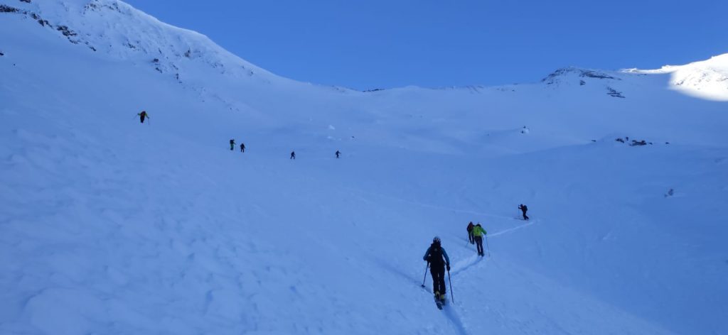 Durant la montée Jérémy, abordera les points clefs théoriques d’une bonne préparation de sortie, analyse de terrain et compréhension des risques. Nous parlerons des aides à la décision (méthode 3×3 et méthode cristal), ainsi que des pièges de l’inconscient qui peuvent biaiser un jugement et engendrer des erreurs. C’est également l’occasion de discuter tous ensemble des retours d’expérience de chacun.